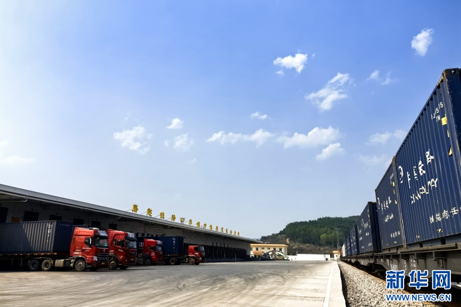磨憨站货场内,各类货物进站接受查验(3月28日摄)。新华网发(勐腊海关 供图)