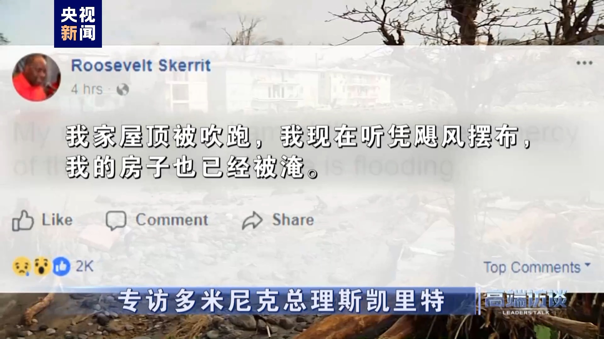 王冠:总理先生,关于气候变化,我们有两组惊人的数据想向您确认:2015年“埃瑞卡”热带风暴带来的损失约达多米尼克国内生产总值的90%,2017年“玛利亚”超强飓风摧毁了多米尼克岛上约90%的建筑。在应对气候变化方面,多米尼克面临怎样的紧迫性?