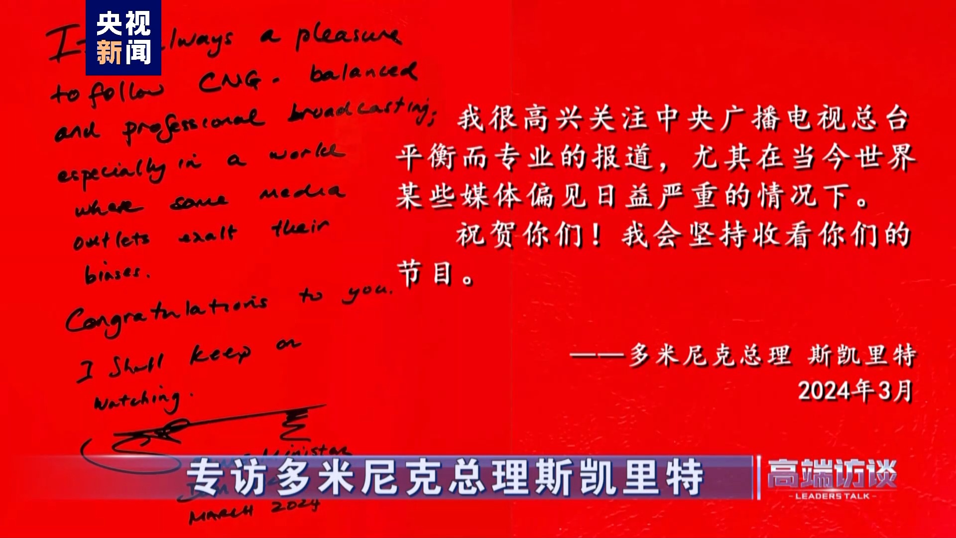 斯凯里特:非常感谢《高端访谈》栏目邀请我,我每次访华都很愉快。中国是多米尼克真正的朋友,我们两国关系一直很友好。我认为此次访华最重要的是与习近平主席的会晤,我们探讨了很多重要议题,不仅关乎双边关系,也涵盖多边议题。同习近平主席一样,多米尼克政府也提倡基于多边主义来解决世界性问题,推动全球发展。所以,此次与习近平主席的会晤成果丰硕。