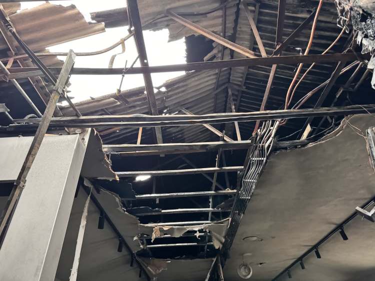 “这个屋角可能漏水,我刚用喷枪烧了几下,就冒烟了,石棉瓦不可燃,可能是把石棉瓦下面的保温材料引燃了。”过火后饭店二层屋顶已经被烧穿,留下一个巨大的空洞,负责动火的工人马某某回忆了事发经过,“从冒烟到起火非常快速,也就一两分钟,看到着火,我们俩立马用旁边的三个干粉灭火器灭火,但(燃烧的保温材料)隔着石棉瓦,(灭火药剂打不进去)根本灭不了,我们就赶紧报警了。”