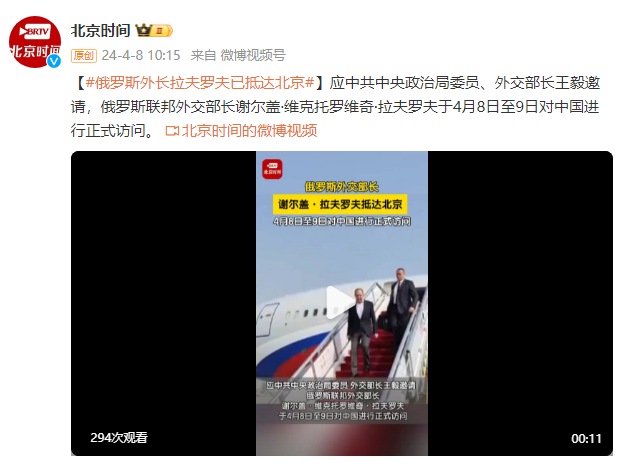 【俄罗斯外长拉夫罗夫已抵达北京】应中共中央政治局委员、外交部长王毅邀请,俄罗斯联邦外交部长谢尔盖·维克托罗维奇·拉夫罗夫于4月8日至9日对中国进行正式访问。