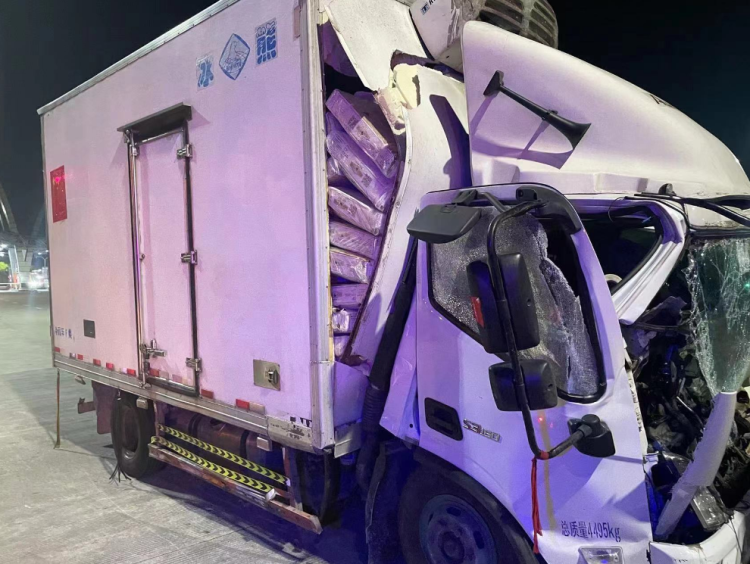 在询问过程中,民警发现顾某神色慌张,表情不太自然,于是对车辆进行进一步检查。经检查,该车车厢装载着一箱箱冻肉,经追尾撞击,车厢受损,部分货物暴露出来。