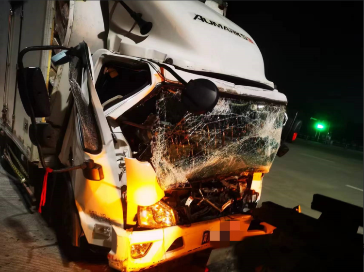 4月2日19时,广西壮族自治区公安厅交警总队高速公路管理支队一大队民警接到过路驾驶人报警称,其途经泉南高速柳州往桂林方向1140km苏桥路段时,发现一辆小货车追尾一辆大货车,小货车受损严重,且有人坐在应急车道内。
