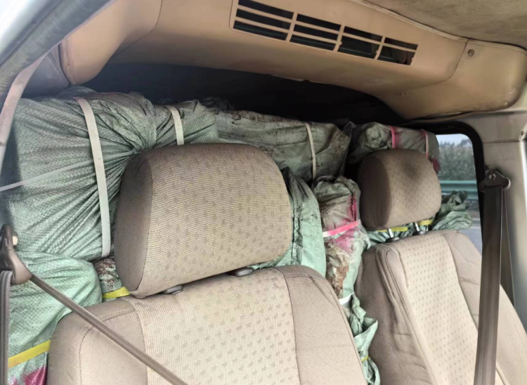 谁知,该车随即停靠在应急车道,在车辆还没停稳的情况下,驾驶人突然从车里跳出,向路边护栏外翻越。见此情况,民警当即上前查看,发现车内塞满了一件件的冻品。