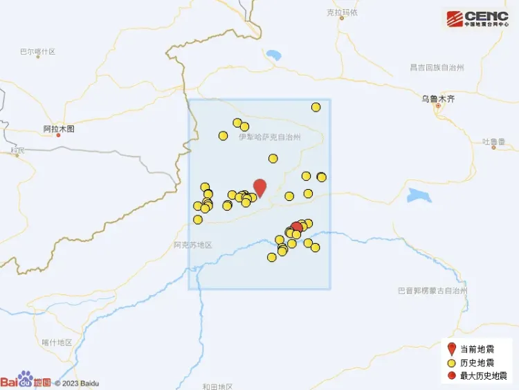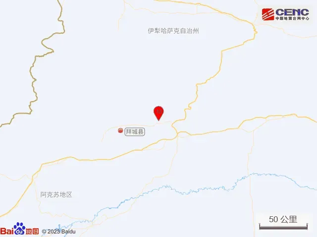 据中国地震台网正式测定,4月10日22时56分在新疆阿克苏地区拜城县发生5.6级地震 ,震源深度16公里,震中位于北纬41.98度,东经82.56度。阿克苏市、伊宁市、库尔勒市等多地有震感。