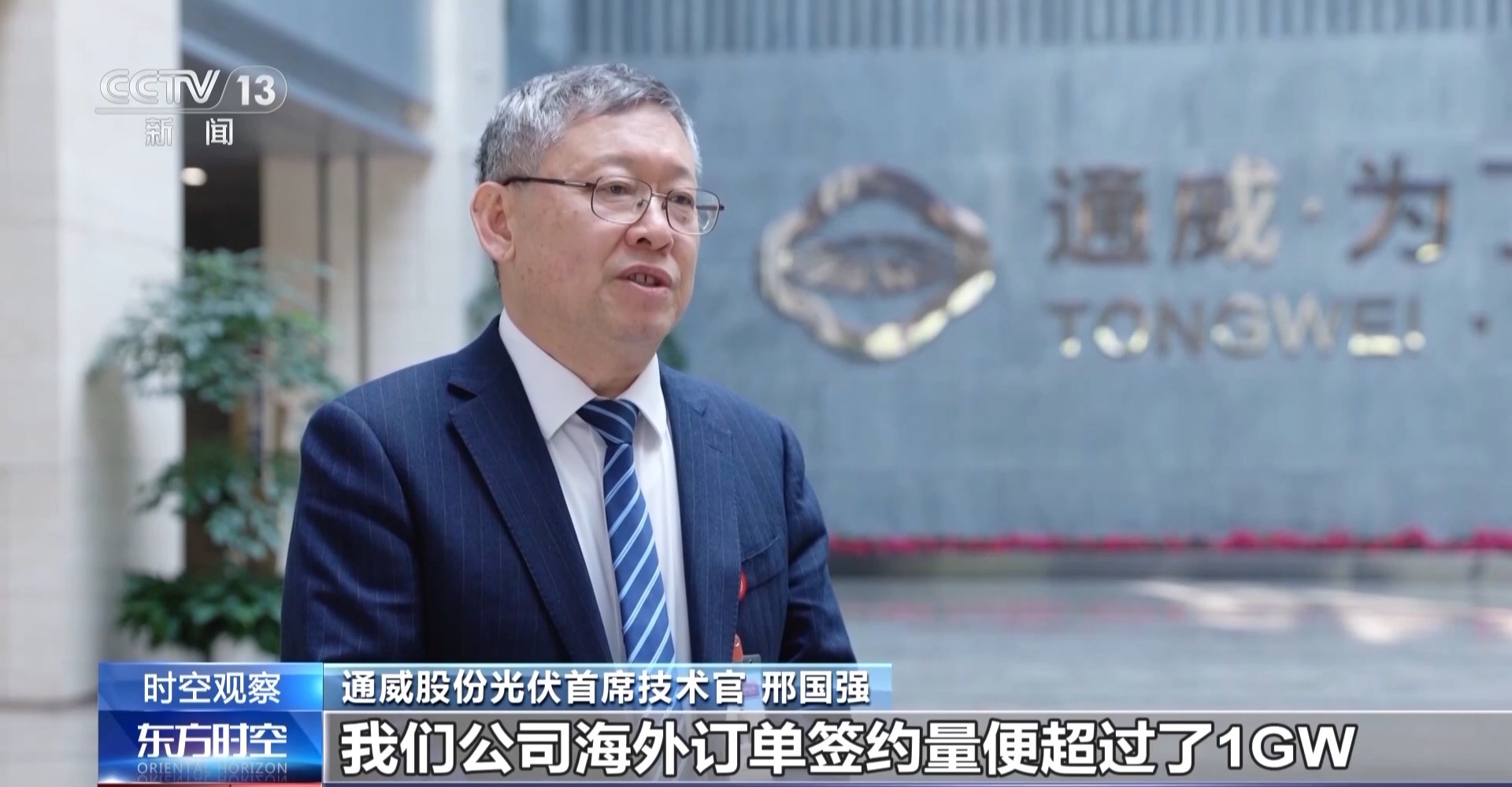 通威股份光伏首席技术官 邢国强:海外市场对于光伏产品的需求在今年依旧保持火热,今年第一季度,我们公司海外订单签约量便超过了1GW,相比去年同期实现了翻倍增长。我们新推出了全新的TNC-G12系列,将组件功率提升到了700W以上,这种高功率高效率的产品精准满足了海外大型地面电站对经济性的迫切追求。