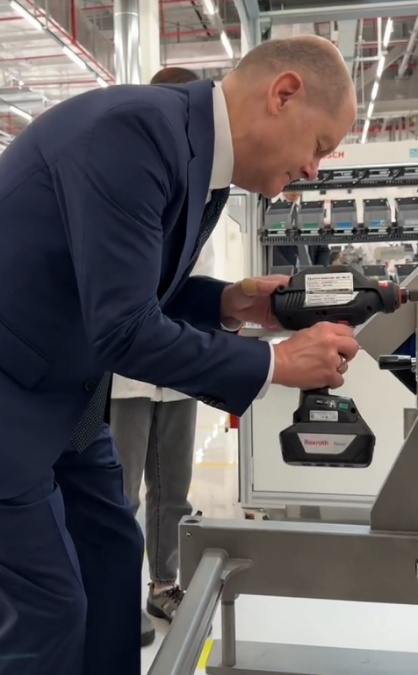 视频中是他前一天在有着德资背景的博世氢动力系统(重庆)有限公司参观的相关内容。朔尔茨在听取工作人员的介绍后,亲自体验了氢动力模块的装配,并对旁边的工作人员竖起大拇指。