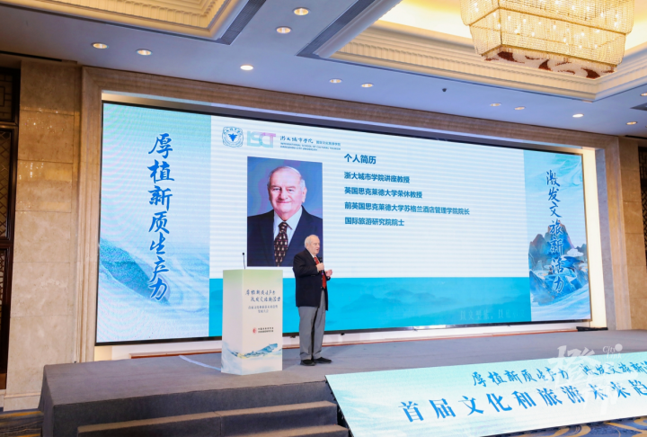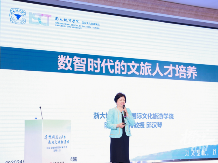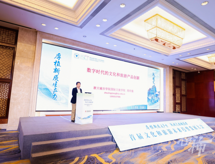 在大会的主题演讲环节,中央财经大学文化与传媒学院、文化经济研究院副院长、教授戴俊骋;浙江大学管理学院旅游与酒店管理系系主任、教授、博导,中国未来研究会文化和旅游研究分会副会长应天煜;国际旅游研究院院士、浙大城市学院教授Carson Lewis Jenkins;浙大城市学院国际文化旅游学院院长、特聘教授,全国旅游管理类本科教指委委员,中国未来研究会文化和旅游研究分会副会长、专家委员会副主任邱汉琴就数字文旅赋能地方高质量发展、数智时代的文旅资源开发与价值转化、新时期世界级旅游目的地建设、数智时代的文旅人才培养等内容进行了精彩分享。