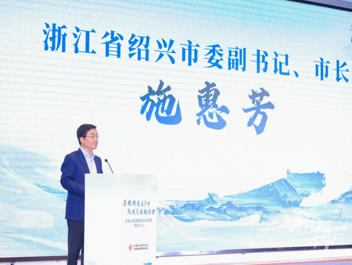 浙江省绍兴市委副书记、市长施惠芳在讲话中表示,文化旅游产业是综合性大产业,一业兴百业旺,而绍兴是一座没有围墙的博物馆,拥有2500多年的建成史,是越文化的发祥地,文旅资源丰富,欢迎更多朋友来到绍兴,对接合作,赢取机遇,双向奔赴文艺事业发展的美好未来。