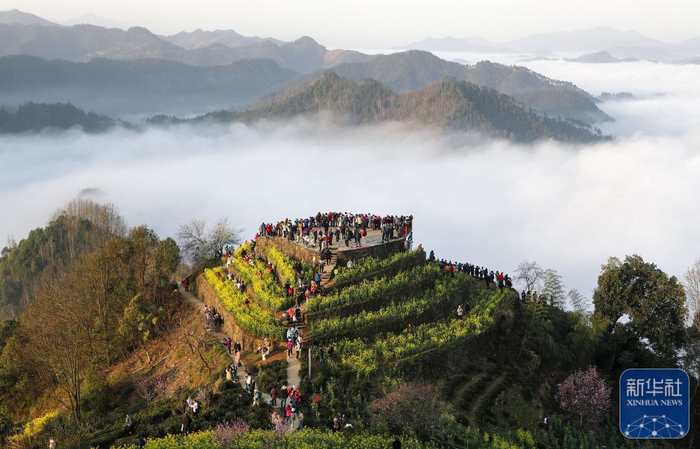 登高望远,踏青赏花,人们尽享明媚春光。