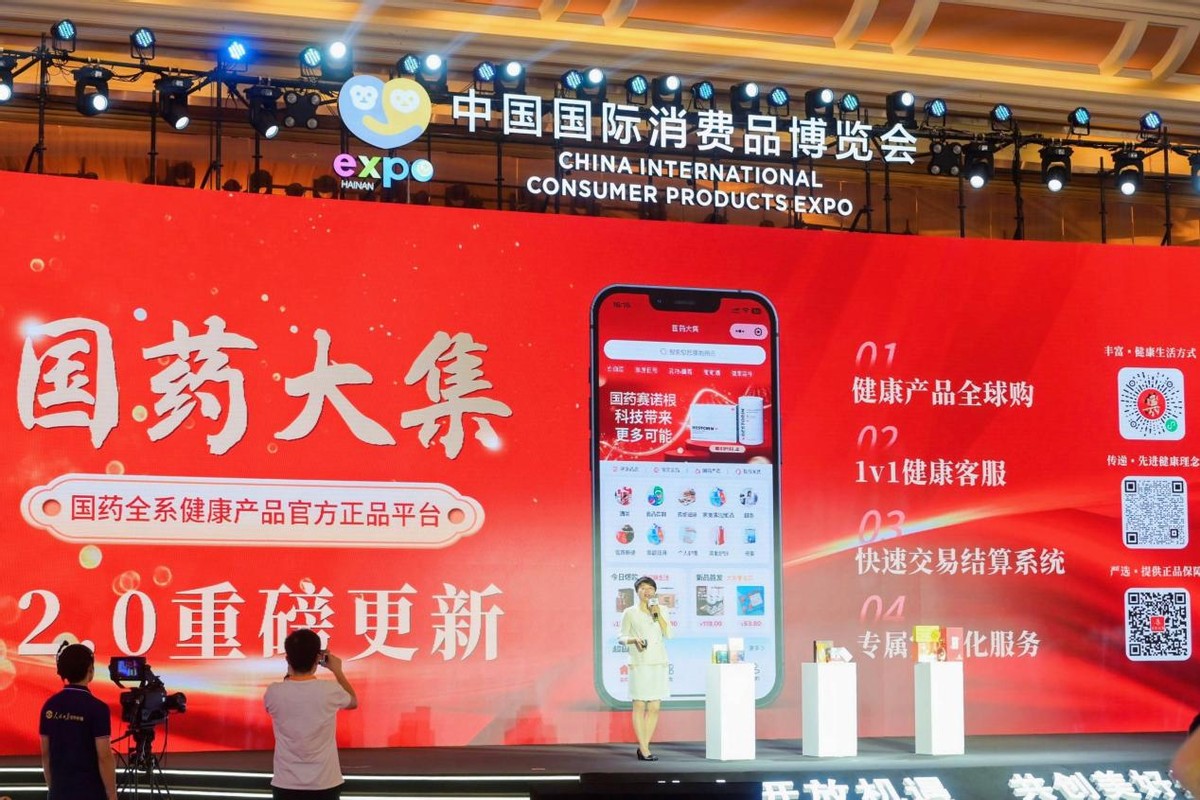 “第三大板块就是国药大集,在上一届消博会上,国药大集1.0版本上线,今年我们成功推出了升级版的国药大集2.0平台。这个平台是国药集团大健康产品的官方正品平台,汇聚了国药集团所有的大健康产品供消费者选择。随着2.0版本的上线,我们增加了许多新功能,不仅针对个人消费者,也针对企业客户。最引人瞩目的是全球购功能,打破了1.0版本仅面向国内品牌的限制,实现了跨境业务的拓展。通过国药大集,客户不仅可以购买到国药集团的优质产品,还能选购全球知名健康品牌的产品。”