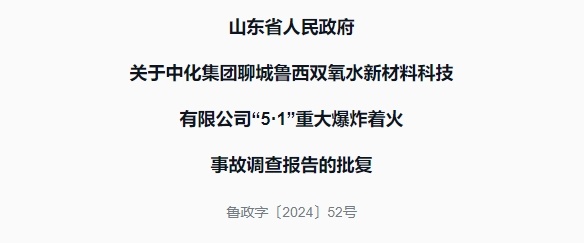 中化集团聊城鲁西双氧水新材料科技有限公司“5·1”重大爆炸着火事故调查组(以下简称事故调查组)提交的《中化集团聊城鲁西双氧水新材料科技有限公司“5·1”重大爆炸着火事故调查报告》(以下简称《调查报告》),已经省政府同意。现批复如下: