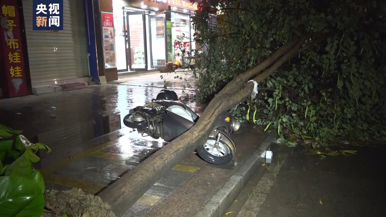 △广西田林遭遇雷暴大风 树木倒伏多处积水