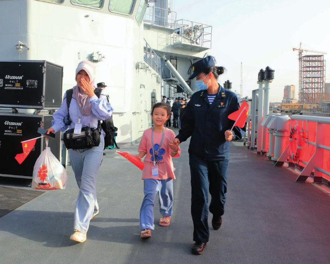 从中国海军军舰首次参与在人道主义危机中撤离平民行动开始,就注重进行国际人道主义救援。2015年,紧急赶赴也门,帮助除中国公民外的15个国家的279名外国公民安全撤离。2023年,紧急赴苏丹撤侨,第二批撤离人员中包括221名巴基斯坦、巴西等国人员。