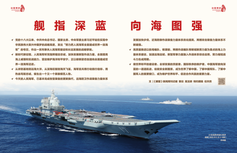 ◇高质量推进以航母编队、核潜艇、两栖作战编队等新域新质力量为重点的海上力量体系建设,加速远海远域、新型军事力量融入作战体系综合运用,努力缩短战斗力生成周期。