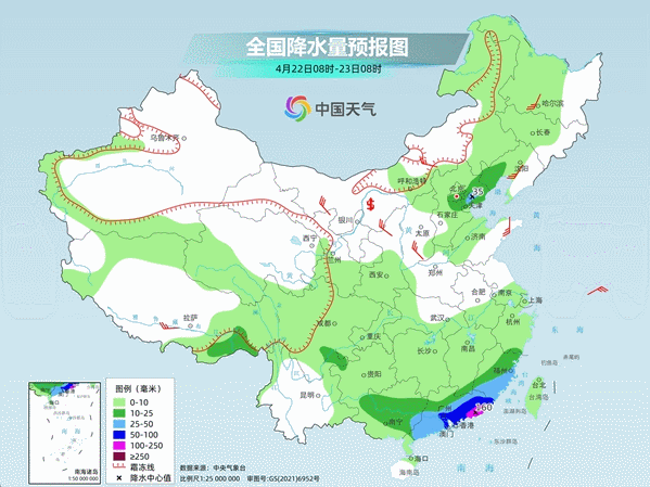 过去三天(4月19日8时至22日7时),南方降雨主要出现在广西北部和中东部、广东、福建西南部、湖南南部、江西南部等地,广东北部多地累计降水量达到200至300毫米。其中,广东深圳、从化、佛冈、韶关、连州等地日降水量突破当地4月单日降水极值。