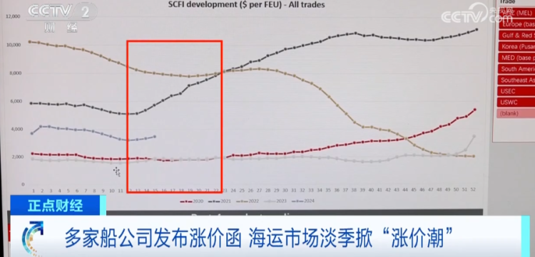 上海国际航运研究中心首席咨询师 张永锋: 整个集运现在有冲高回落的态势,因为从红海绕航的船舶越来越多开始返航,包括大量的船舶下水对市场的冲击,这种影响日益显现。对于船东来讲,大家的信心会稍微恢复,最近这两周的表现,市场已经有明显的回调态势。