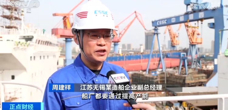 在江苏无锡的一家造船厂,副总经理周建祥告诉记者,公司目前造船订单饱满,产线满负荷运转 ,今年计划交付19艘新造船。