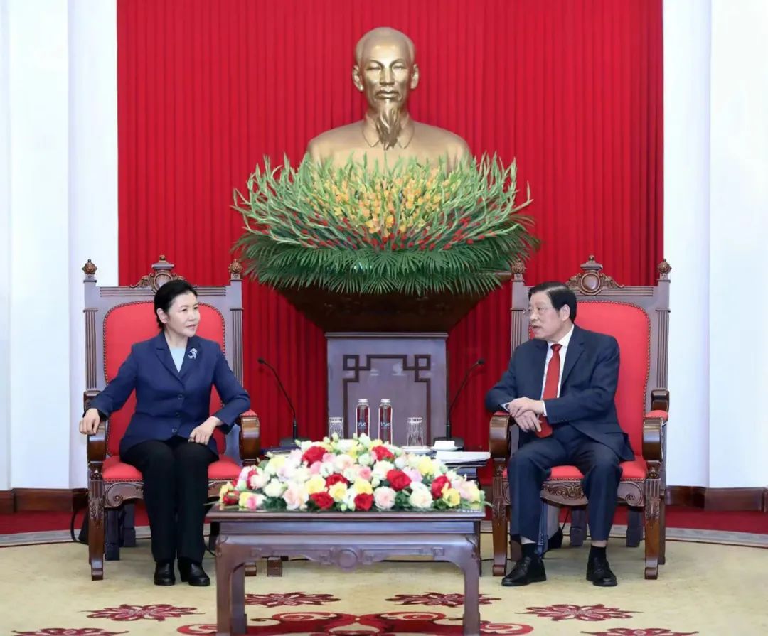 贺荣分别向苏林、潘庭濯介绍了中共十八大以来在习近平法治思想引领下中国法治建设取得的巨大成就和今年全国两会精神。她表示,习近平总书记同阮富仲总书记共同宣布构建具有战略意义的中越命运共同体,开启了中越关系发展新篇章。中国司法部愿与越方一道,共同落实好两党最高领导人的重要共识,进一步深化法治领域交流互鉴,在加强执法司法合作、移管被判刑人、法治人才培养等方面开展务实合作,推进中越命运共同体建设取得更多成果。