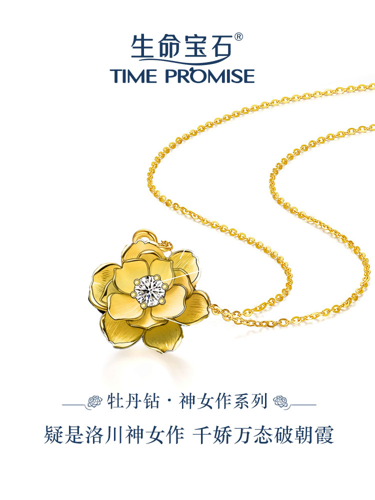这批量产的牡丹钻产品,命名为“神女作”,名称取自唐代诗人徐凝的诗句:“疑是洛川神女作,千娇万态破朝霞。”寓意雍容华贵,让牡丹的美,永恒传承。量产的 “神女作”系列牡丹钻手链售价1999元,包含一颗30分大小的牡丹钻和18K金手链。“神女作”系列牡丹钻项链售价3999元,包含一颗50分大小的牡丹钻和18K金项链。