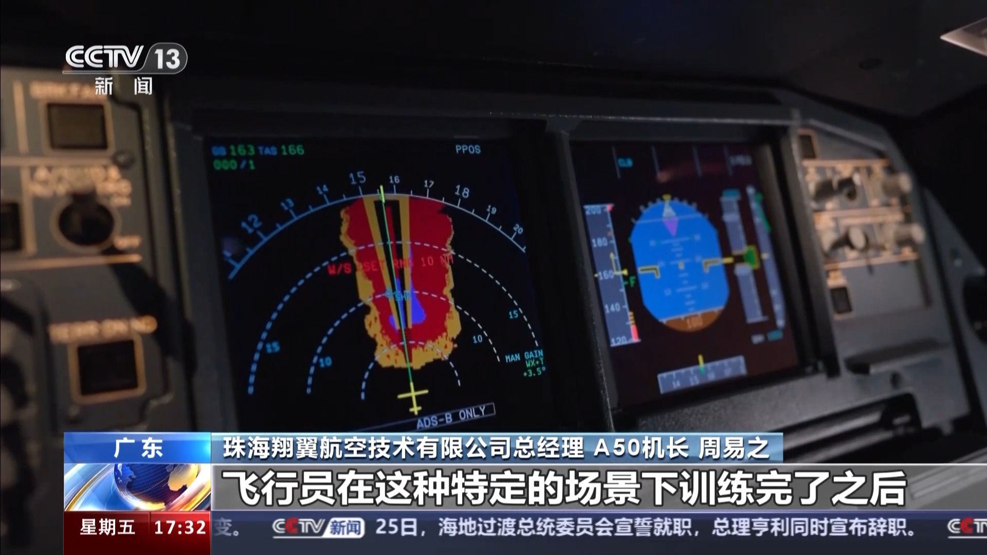 珠海翔翼航空技术有限公司总经理 A50机长 周易之:航空运输安全是第一位,我们通过模拟机可以模拟各种复杂的场景,模拟飞机的故障,比如发动机失效、鸟击。飞行员在这种特定的场景下训练完后,在航班上遇到就能胜任这项工作,同时保证飞机安全。