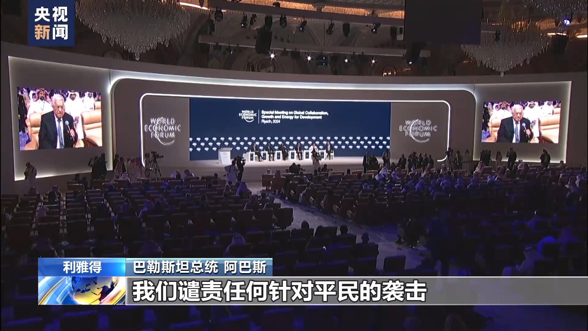 当地时间4月28日,巴勒斯坦总统阿巴斯在沙特首都利雅得举办的世界经济论坛上强烈谴责以色列针对平民的袭击,同时要求立即停火,向加沙地带居民提供人道主义援助。