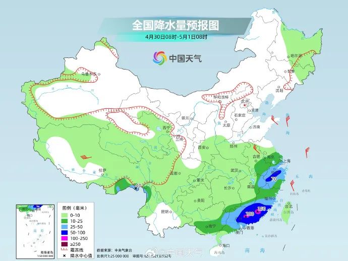 今年五一假期伊始,我国大部天气总体适宜出行,但假期后期中东部将有大范围降雨,部分地区有大雨或暴雨,对假期返程不利,公众假期请合理安排行程。其中,江南南部、华南等地前期累计降雨量较大,次生灾害发生的风险较高,大家尽量避免前往山区、河谷等危险地带。祝大家度过一个安全、快乐的五一假期。