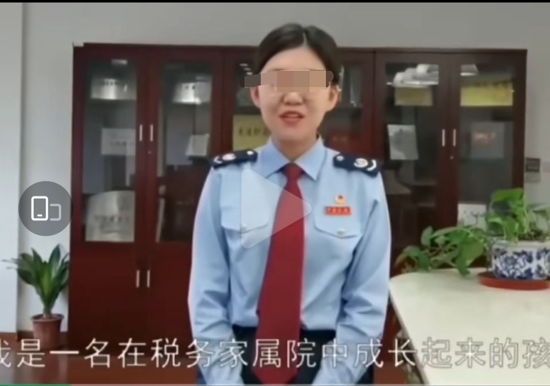 4月30日下午2点半,大皖新闻记者查看这条视频内容显示:视频的自述者是上海市青浦区税务局第一税务所庞某某。她在视频中称:“我叫庞某某,是上海市青浦区税务局第一税务所的一名基层税务工作者,我的爷爷和父亲也都是税务家庭的一份子,我是一名在税务家属院中成长起来的孩子,从小受到浓厚的税务氛围的熏陶……在毕业之后我选择了接过爷爷和父亲手中的接力棒,让税务蓝在我们家继续传承下去。”