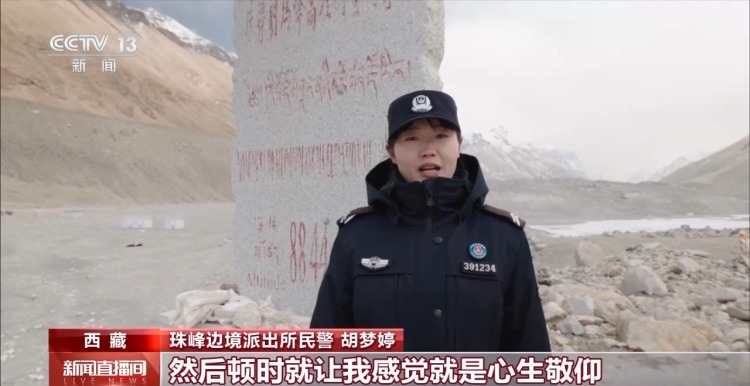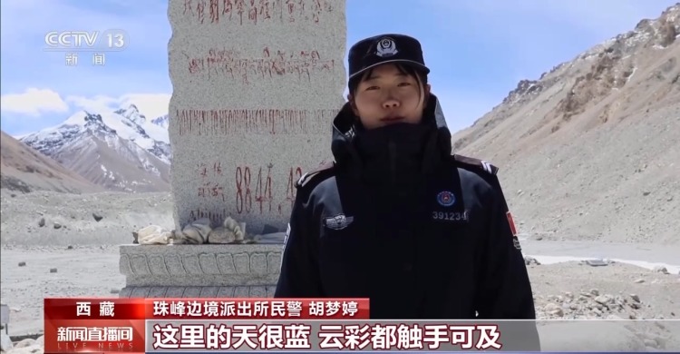 珠峰边境派出所民警 胡梦婷:这里的天很蓝,云彩都触手可及。珠穆朗玛峰,世界最高峰,对于我来说不再是课本上那遥不可及的存在,而是我已经抵达并驻守的地方。