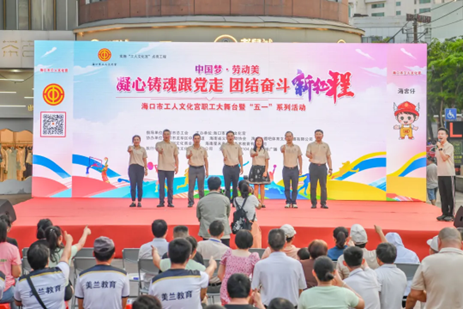 4月30日,由海口市总工会指导,海口市工人文化宫主办,海口市龙华区中山街道、海南省义工互助协会、海南飞镖吧体育文化传媒有限公司、金棕榈文化商业广场、海南星未来青少年艺术教育有限公司协办,海口广电文化产业有限公司执行的“中国梦·劳动美——凝心铸魂跟党走 团结奋斗新征程”2024年海口市工人文化宫职工大舞台暨“五一”系列活动在海口市工人文化宫户外广场成功举办。