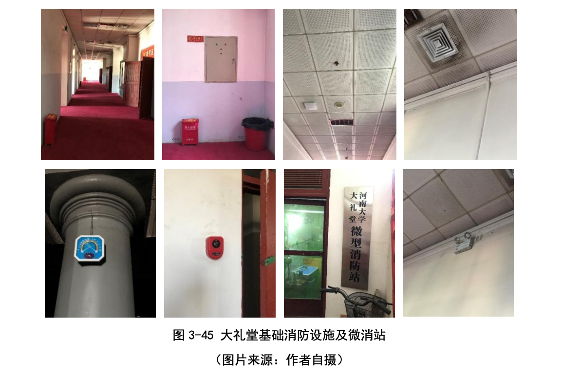 研究者通过对河南大学教育建筑遗产的消防现状实地调研,总结得出当前校园内建筑遗产保护单位存在的消防安全问题和保护利用问题如下: