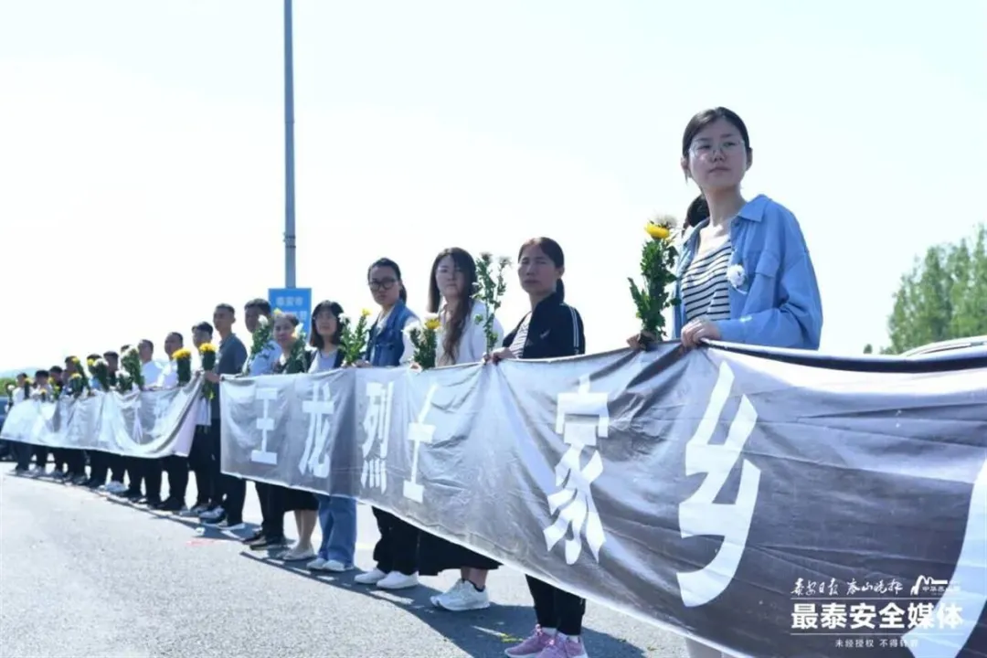 5月8日下午,王龙的棺椁从淄博返回家乡泰安市宁阳县,家乡的人们早早在高速公路出口等待,在他回家的路上,大家聚在一起,默默地等待、迎接,送别英雄。