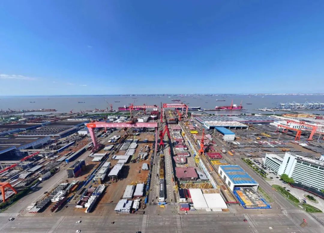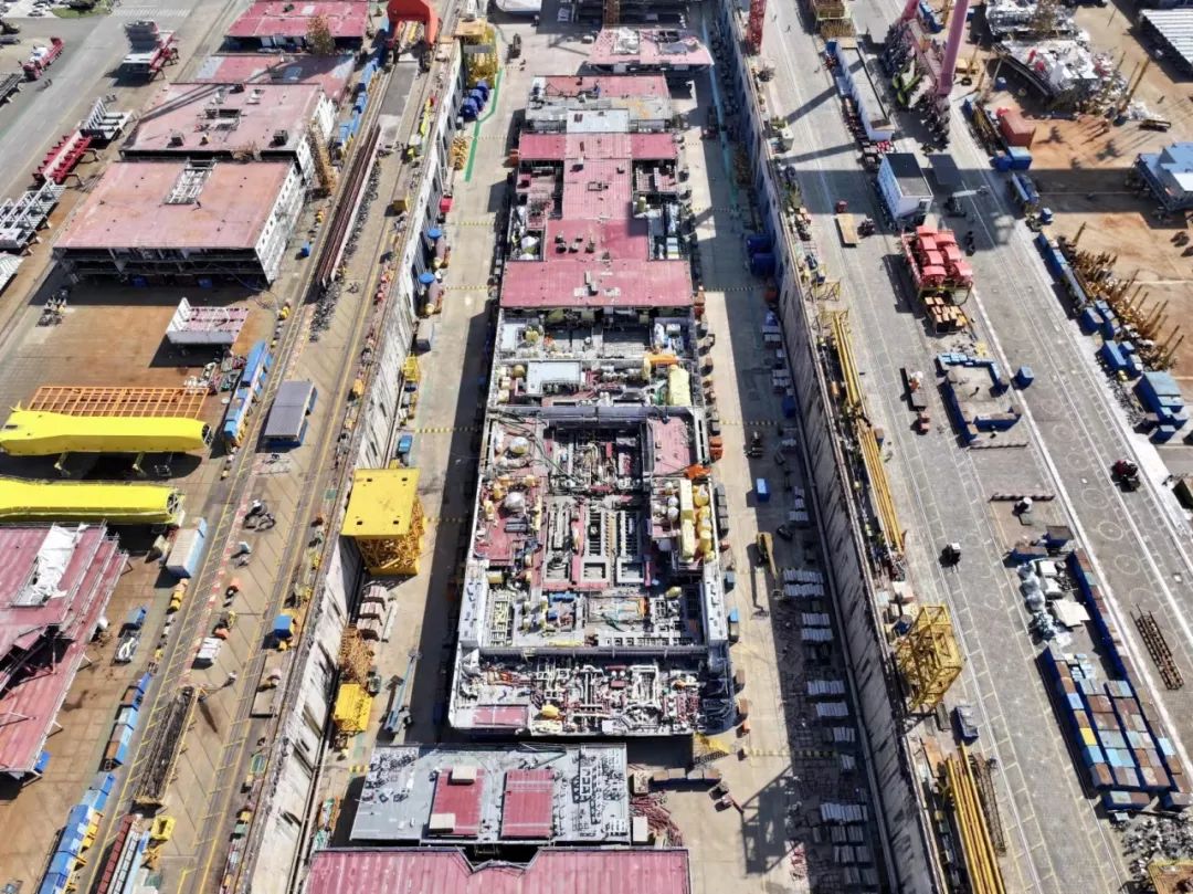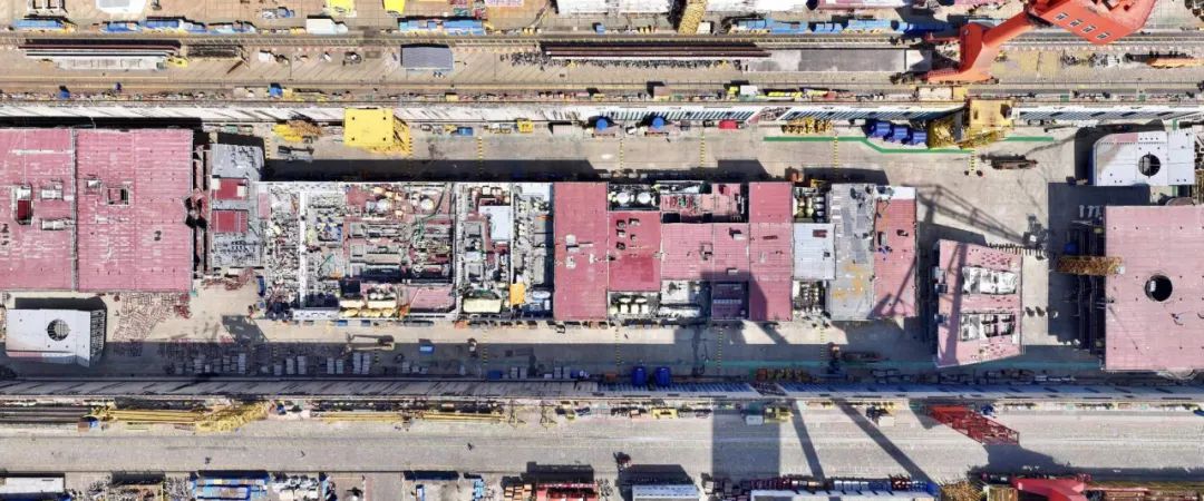 俯瞰第二艘国产大型邮轮搭载总装现场。