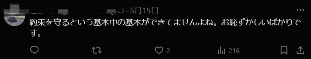 “信守承诺是基础中的基础,连这一点都没有做到真令人感到羞耻。”