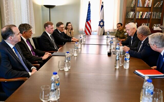 5月20日,到访的美国总统国家安全事务助理沙利文在特拉维夫与以色列国防部长加兰特等以方官员举行会谈。图自以媒