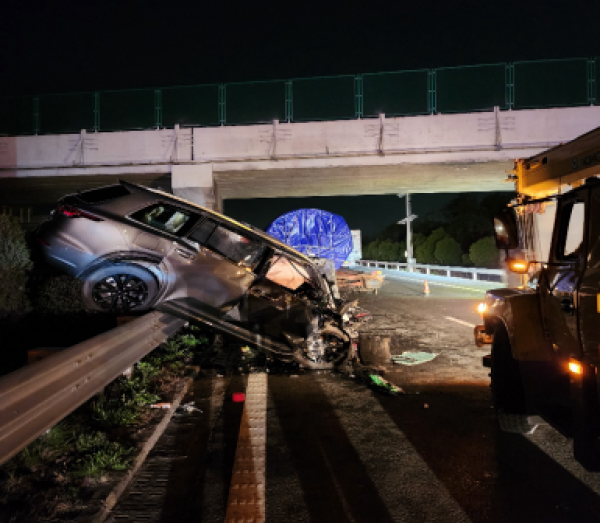 行驶了约10分钟后,孙某的车辆追尾了同车道上一辆低速行驶的超重型低平板半挂车。猛烈的撞击使孙某的车辆飞出道路,斜挂到了高速路栏杆上,车头几乎全部粉碎。正在打瞌睡的孙某没来得及做出任何反应,就因撞击陷入昏迷。