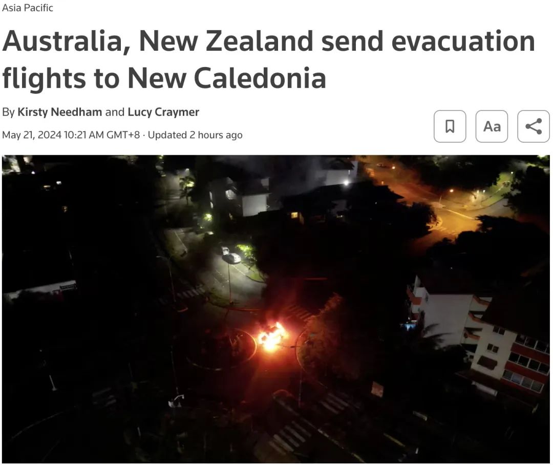 澳大利亚和新西兰表示,将在21日派遣政府飞机前往发生骚乱的法属南太平洋群岛新喀里多尼亚,协助两国被困国民撤离。