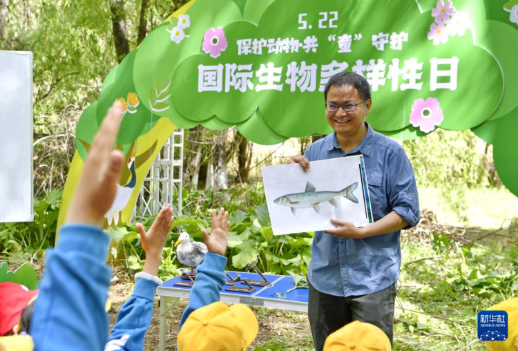5月22日,西藏大学生态环境学院教授张继峰向小学生普及有关西藏鱼类的知识。