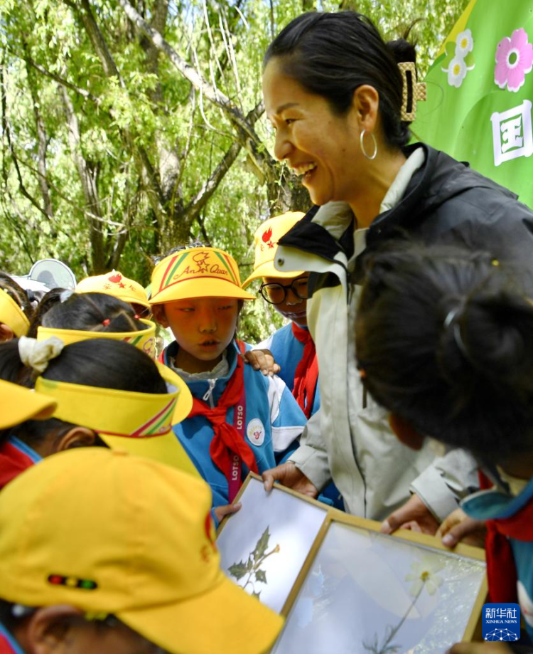 5月22日,西藏大学生态环境学院副教授索南措向小学生普及植物多样性知识。