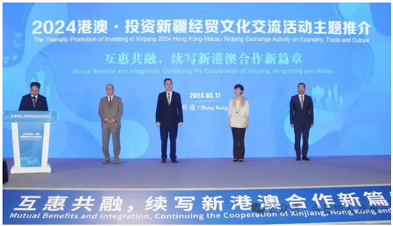 5月17日,2024港澳•投资新疆经贸文化交流活动开幕式及推介活动于香港会展中心成功举行。新疆维吾尔自治区各州地政府代表、香港企业家代表、香港各商协会代表参加推介会,助推两地经贸投资、文旅合作发展。