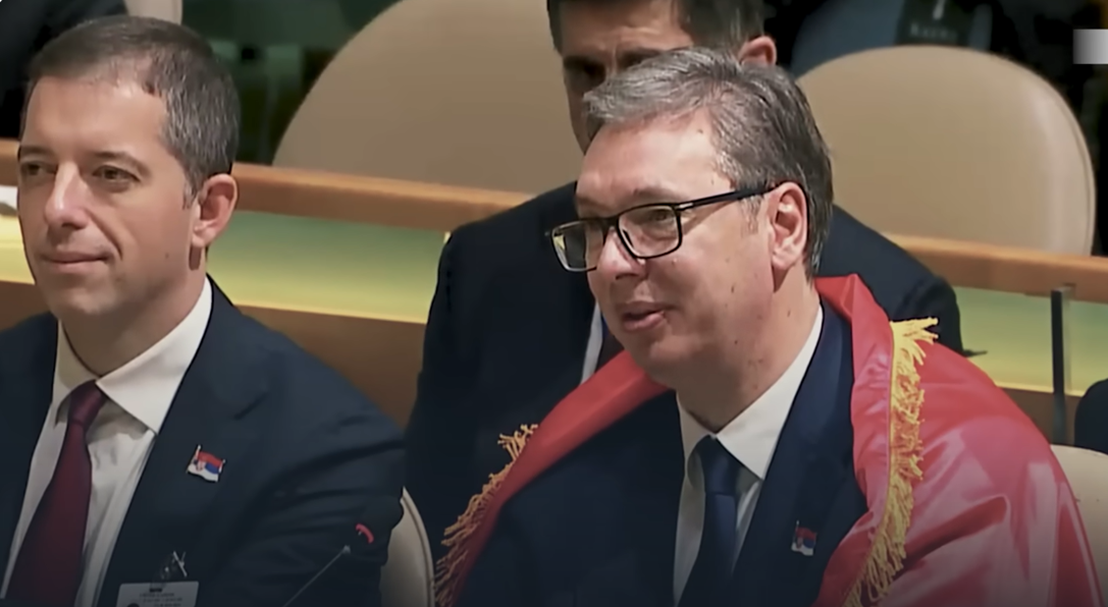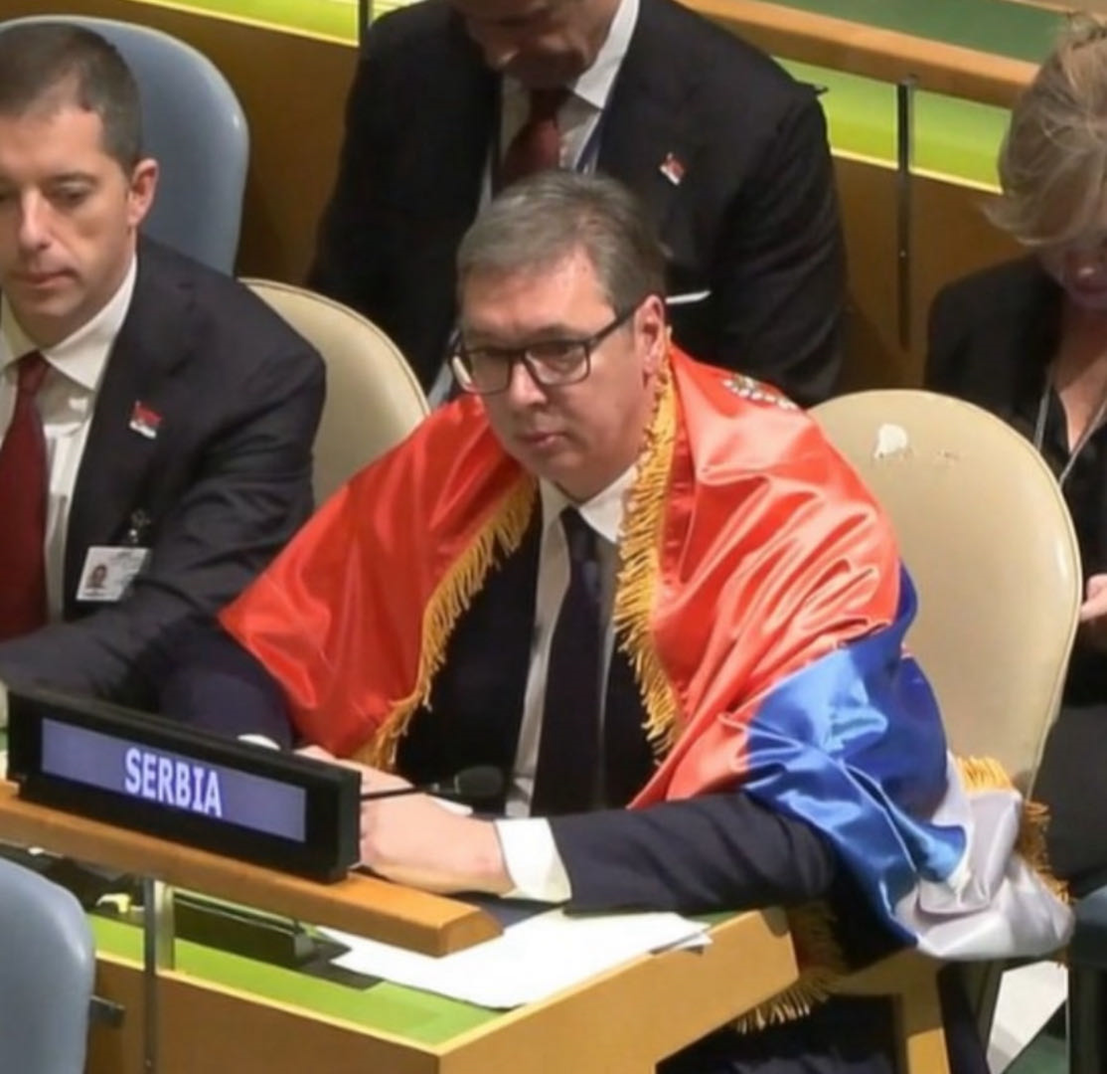有法国媒体报道称,武契奇23日还在社交媒体上发了他在联大会场的图片,其中一张图显示他身披塞尔维亚国旗。他在配文中称,“我为我的塞尔维亚感到骄傲”。