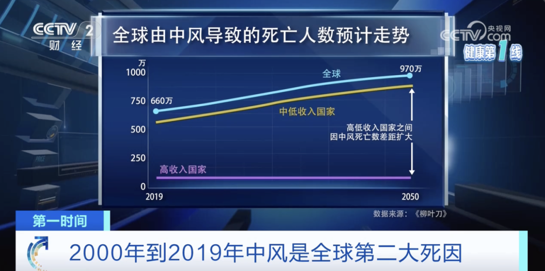 并且世界卒中组织和《柳叶刀》合作的报告还预测,如果在预防和治疗方面没有取得重大突破,那么,随着人口增长和老龄化,每年全球因中风而死亡的人数会从2019年的660万人,增长到2050年的大约970万人,增长率高达47%。并且,高收入和中低收入国家之间的差距还在不断扩大。