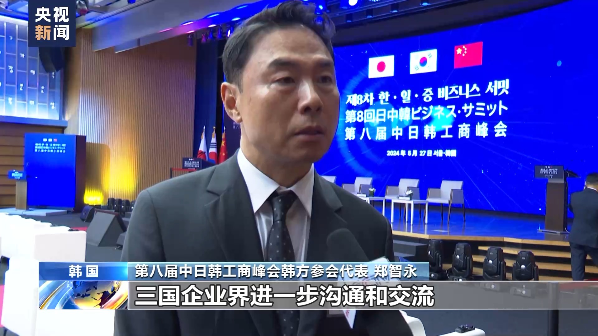 第八届中日韩工商峰会韩方参会代表 郑智永:通过中日韩工商峰会,三国企业界进一步沟通和交流,期待中日韩三国经济可以持续发展,也期待中日韩三国加深友好关系。