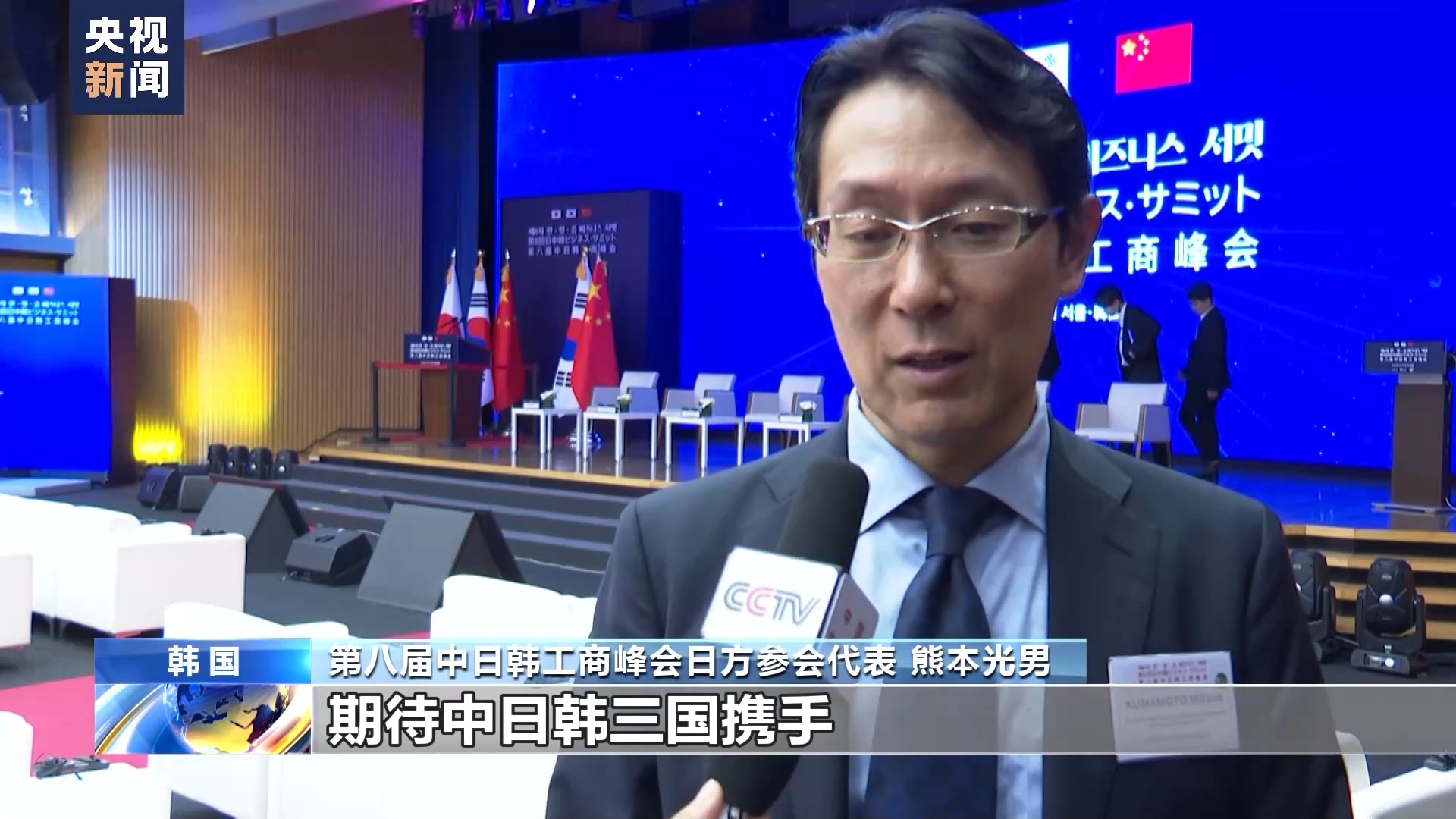 第八届中日韩工商峰会日方参会代表 熊本光男:期待三国在各自的优势产业加强合作,期待中日韩三国携手,共同提升包括欧美、东南亚市场在内的国际贸易份额。