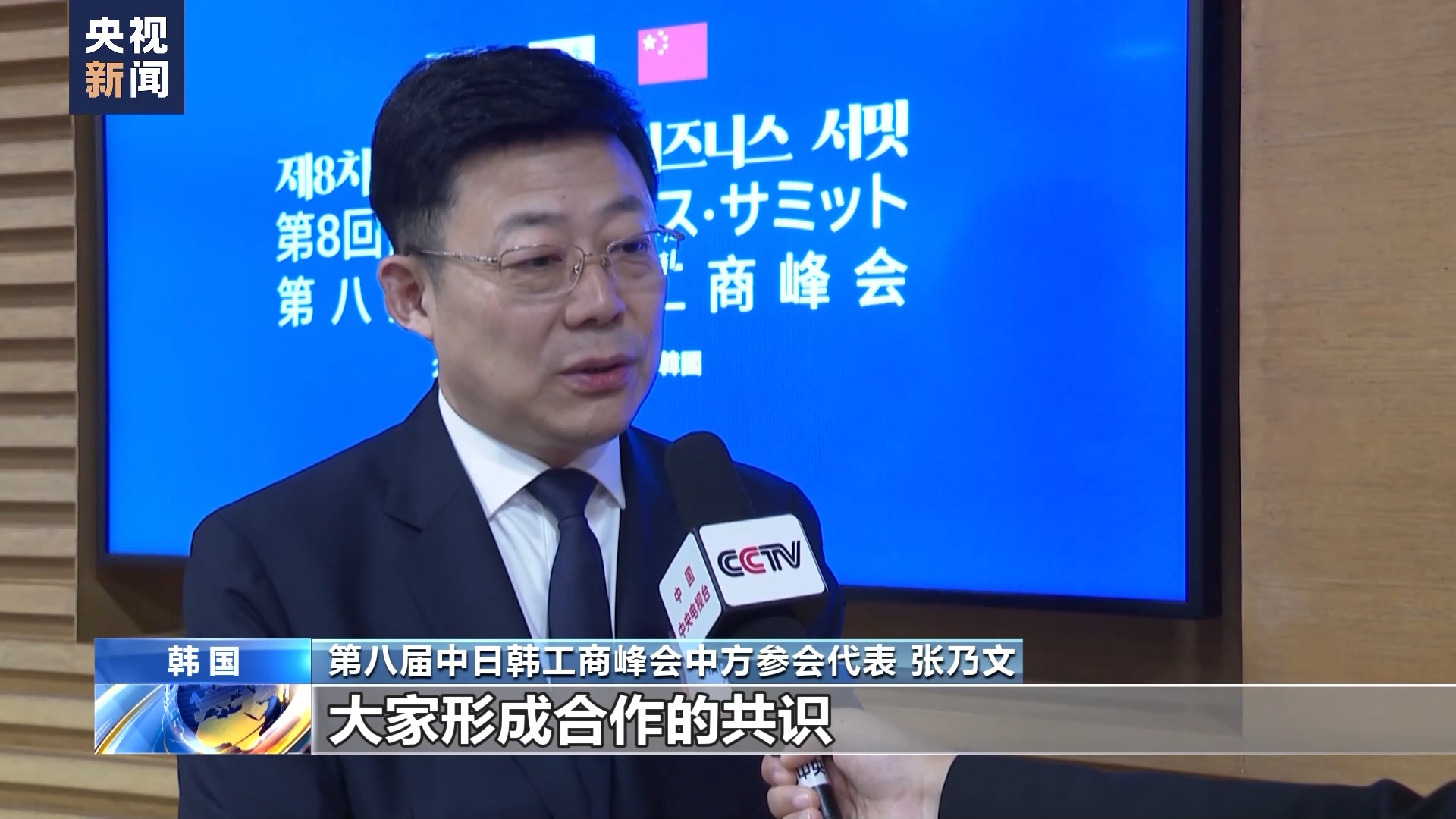 第八届中日韩工商峰会中方参会代表 张乃文:希望通过这次峰会,我们未来在清洁能源、人工智能、健康医疗等产业,大家形成合作的共识,充分利用各自的资金、技术、资源等优势,加快形成一次新的合作项目。