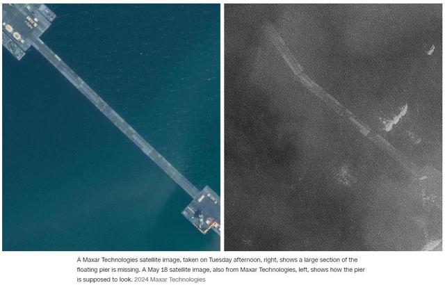 卫星图显示,美军建造的浮动码头已损坏 图源:美国Maxar Technologies公司