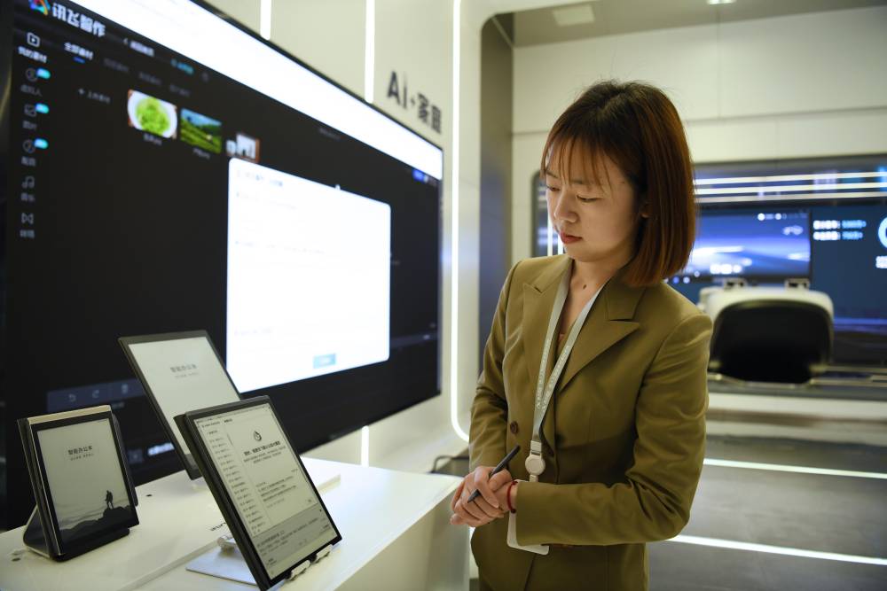 在合肥声谷,对着鼠标发出语音指令,一份表达简练、配色简约的简历随即生成;依托讯飞机器人超脑平台和讯飞星火大模型,AI扫拖机器人能识别复杂语音和手势指令,“说哪扫哪、指哪扫哪”。
