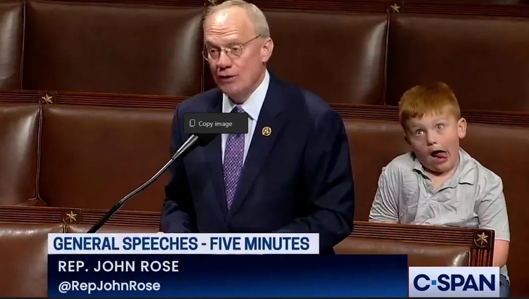 【环球网报道】当地时间3日,一段美国国会的视频在网络上疯传,引发多家美媒关注。据《纽约时报》报道,共和党籍众议员约翰·罗斯3日在众议院就特朗普被裁定有罪一事发言时,坐在其身后的6岁儿子盖伊对着媒体镜头扮鬼脸,这一幕迅速在社交媒体上走红。美国《国会山报》称,众议院听证会上争吵不休的议员们都比不上国会最新的可爱网红明星:罗斯众议员6岁的儿子。