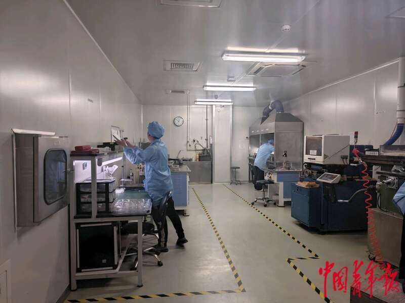 苏州光电技术研究院中试服务基地,两名工作人员在操作间。中青报·中青网记者 朱彩云/摄