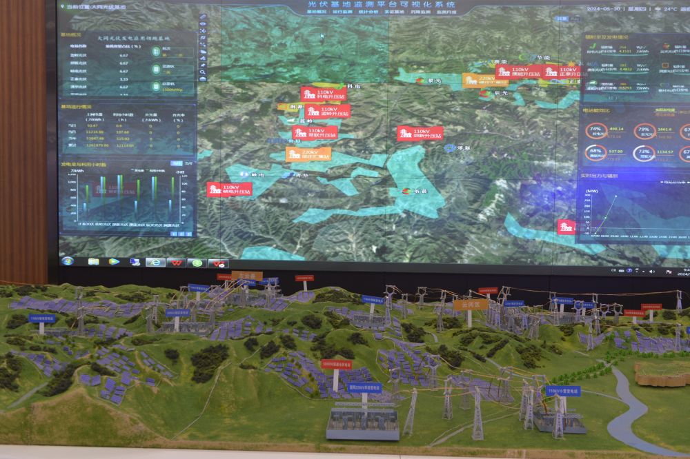 5月29日,记者拍摄的大同光伏发电监测服务中心的可视化系统。(新华社记者刘力航 摄)
